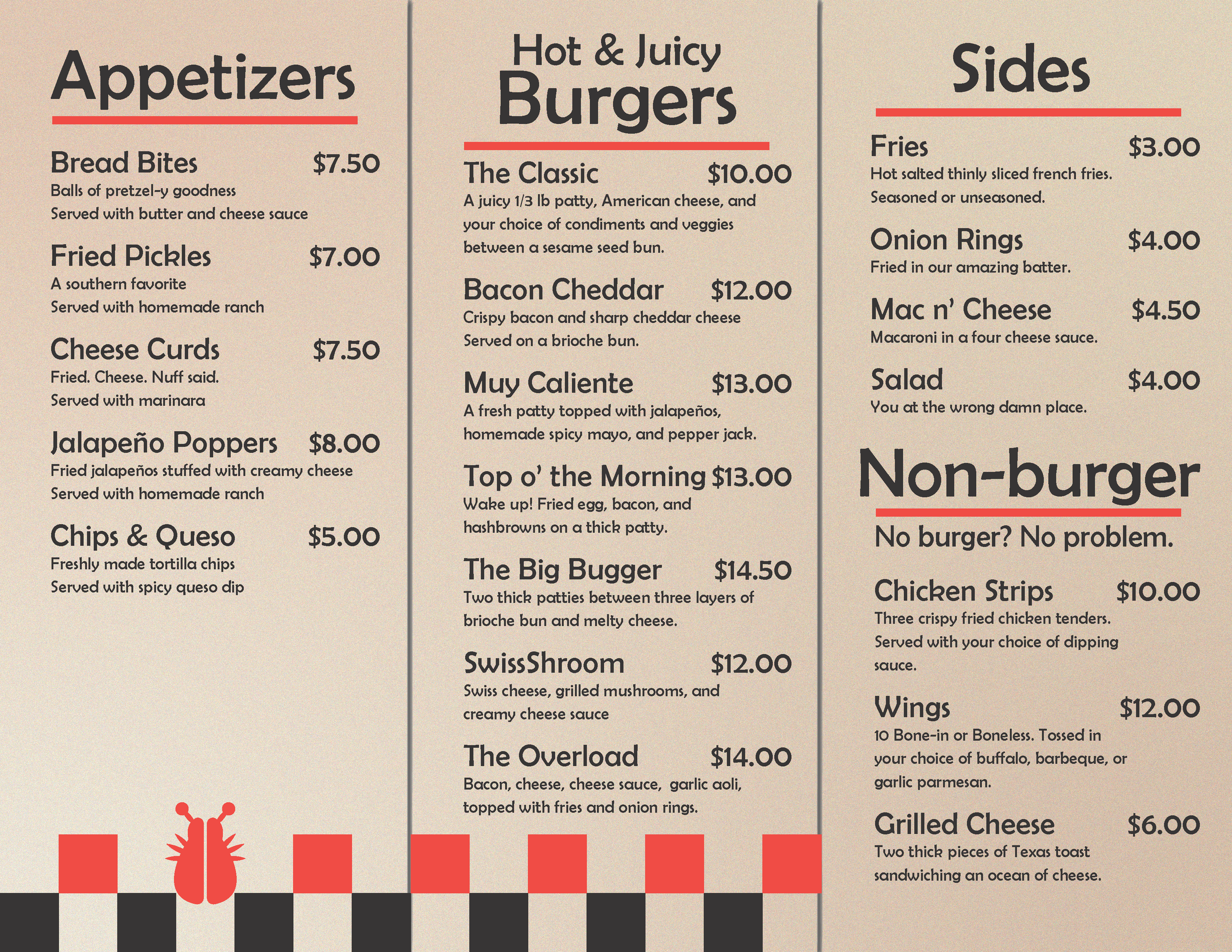 Bugruckus Menu